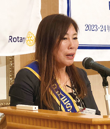私は、例会・奉仕活動等を通して、会員の方々とお会い出来るのが楽しくなり勉強になりました。この気持ちを奉仕、親睦、広報を通して、地域の方々にロータリークラブをもっと知って頂きたいと思っております。1年間、宜しくお願い致します。